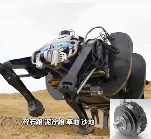 12自由度四足仿生機(jī)器人,整機(jī)12套關(guān)節(jié)電機(jī),單關(guān)節(jié)電機(jī)功率1kW,峰值輸出扭矩200Nm,最高輸出速度180rpm,電機(jī)重量2kg.